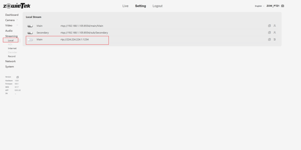 Of course. Via web interface, you can click “Local” and set the multicast transmission.