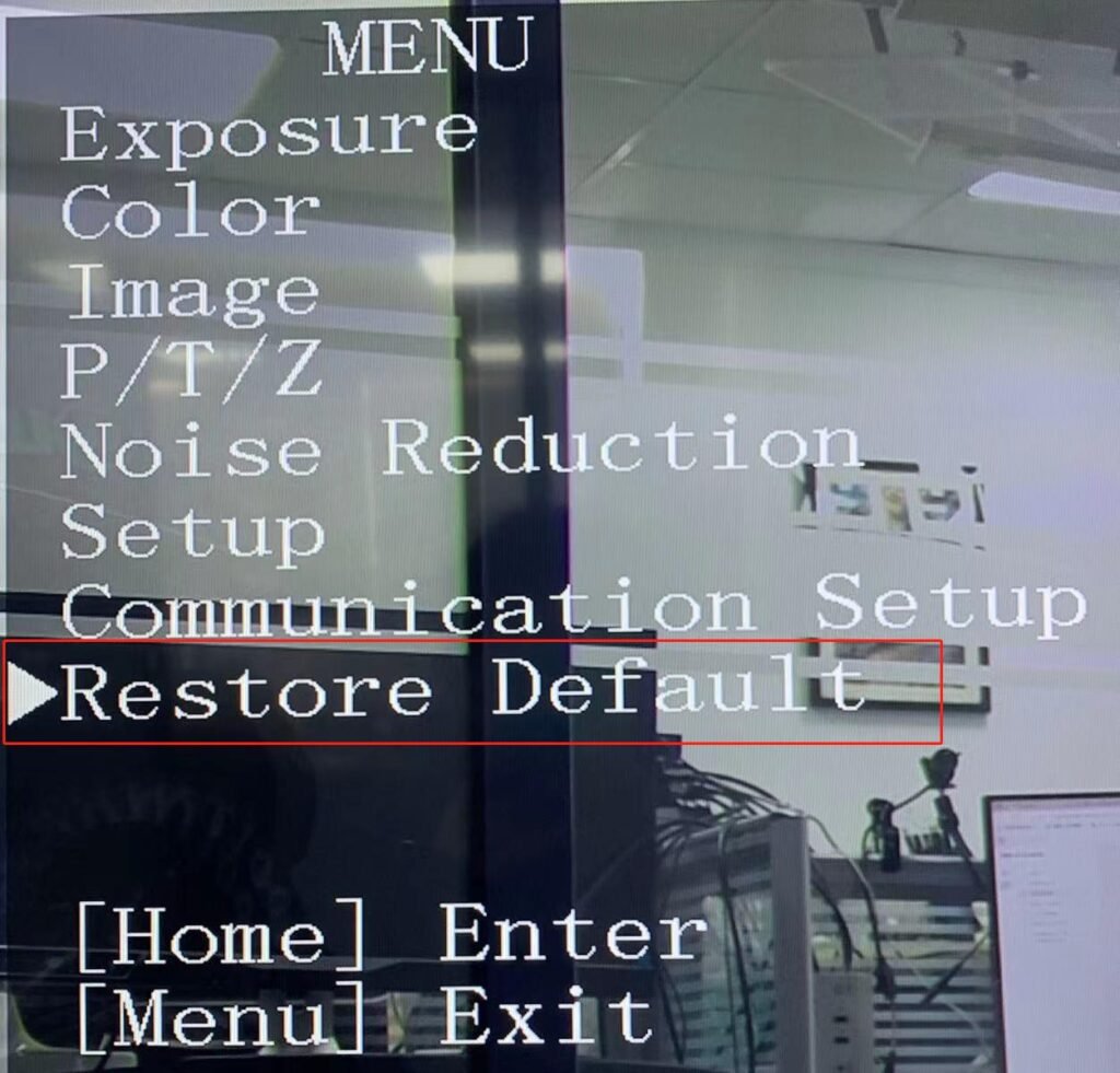 1. You can use the IR remote: press [MENU]→(Restore Default)