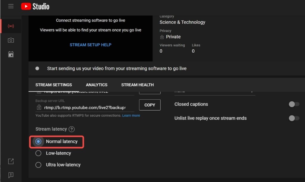 First, please log in to YouTube’s official website and enter the push page shown below to obtain YouTube’s stream address and stream key.
