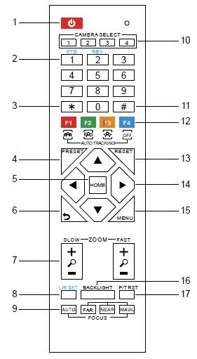 [SET PRESET] + Numeric button (0-9): Setting a corresponding numeric key preset position.