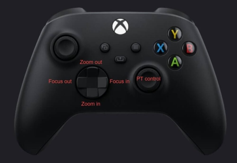 - Zoom Control (Zoom In/Out): With the Xbox joystick, you can easily control the camera’s zoom, adjusting the focus to capture distant or close-up shots with precision. Whether you’re shooting wide shots or focusing on details, this zoom functionality allows for quick and accurate adjustments.