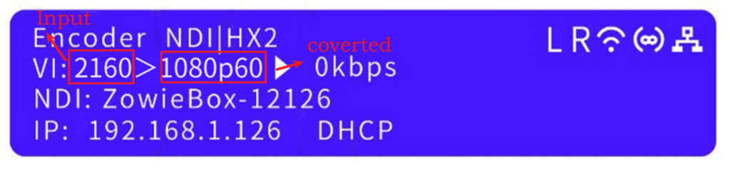 At this time, the input webpage and LED screen will display both the input signal source and the converted signal source.