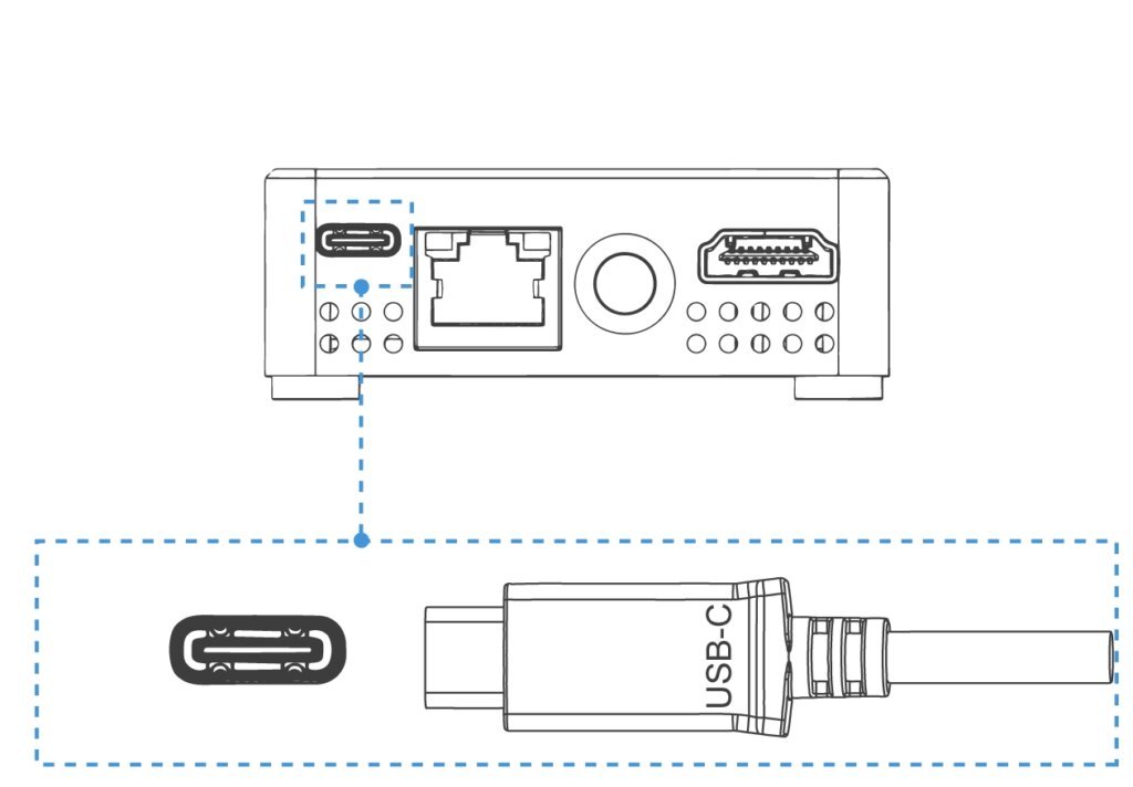 ZowieBox can also be powered by Power over Ethernet (PoE/ PoE+). You needn’t prepare a power adapter. To take advantage of PoE, the LAN cable has to be connected to a PoE Network Switch, but at least a CAT5e LAN cable is required for PoE.