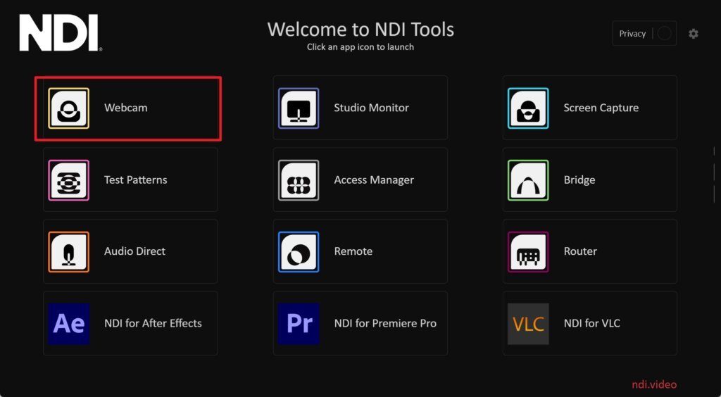 Open NDI Tools, click to open the Webcam.