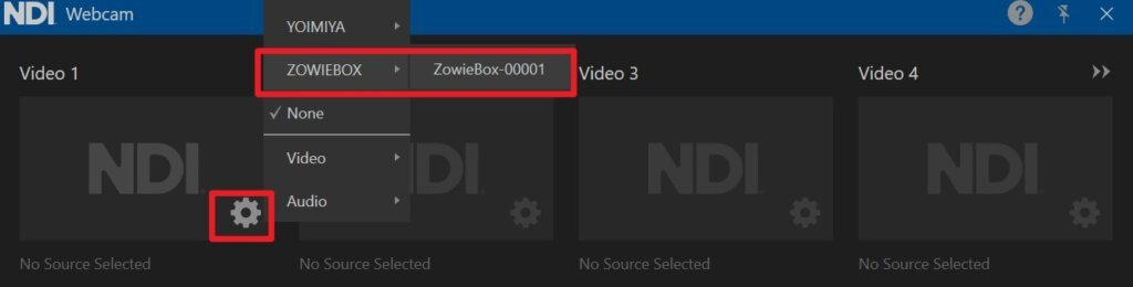 In the pop-up Webcam window, click the setting button in the lower right corner and select the desired ZowieBox source.