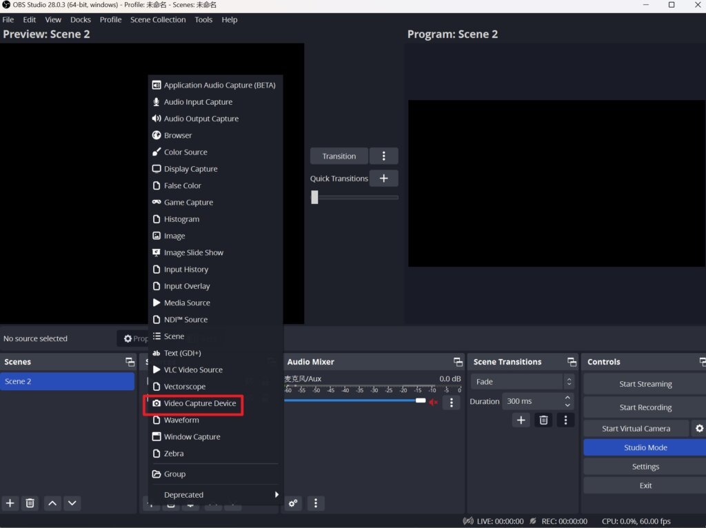 Add a Video Capture Device in OBS.