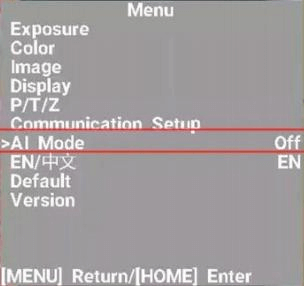 1. Use the OSD menu to enable it. In the AI Mode column, press the left and right key on the remote control to switch between different modes. Currently, there are three tracking modes, auto framing, demo tracking, single tracking