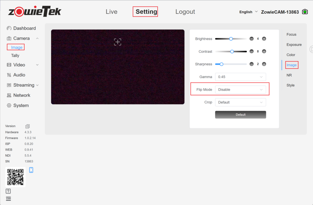Method 1: Log in to the web console, click Setting->Camera->Image->Image, and select the required flip mode.