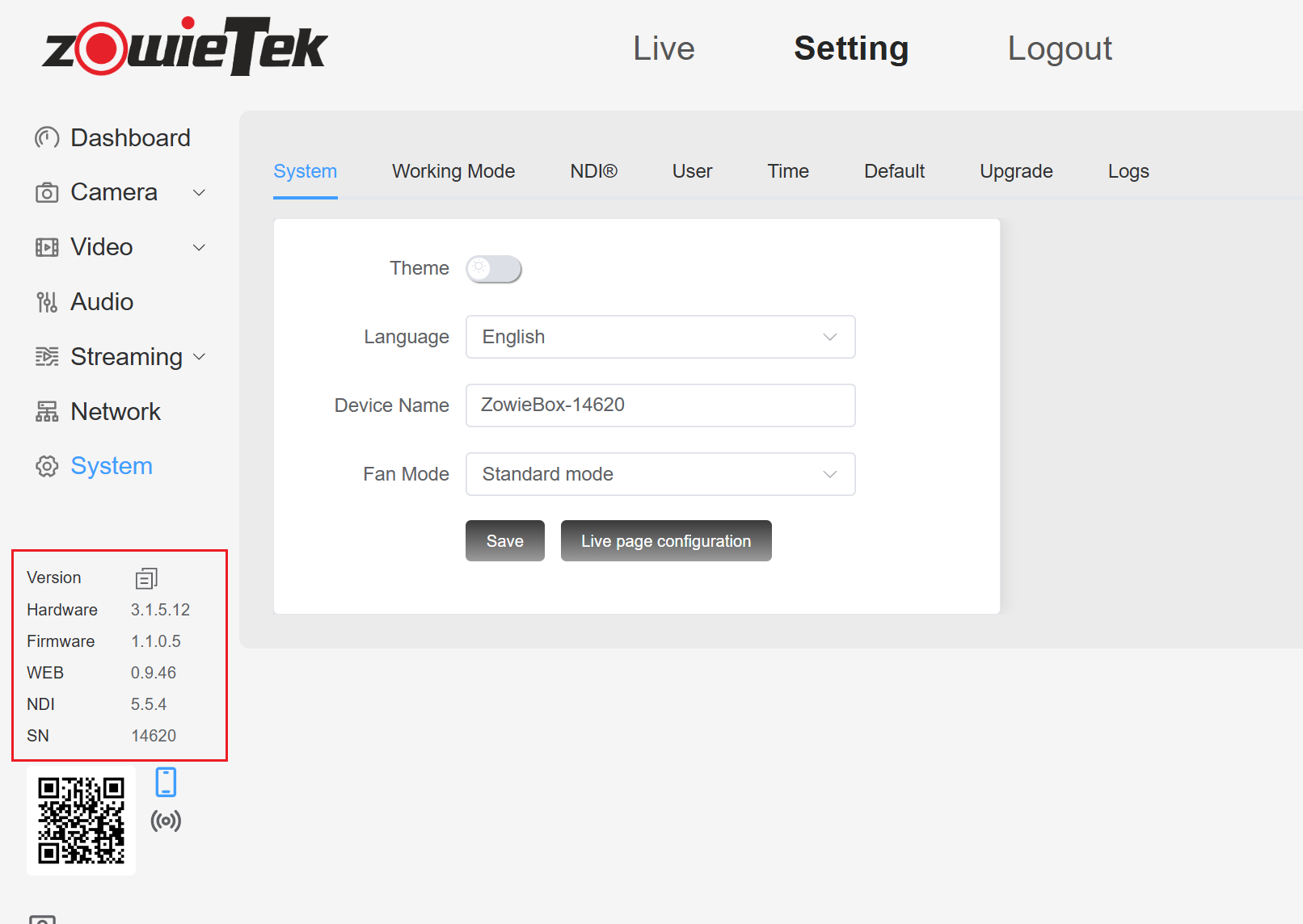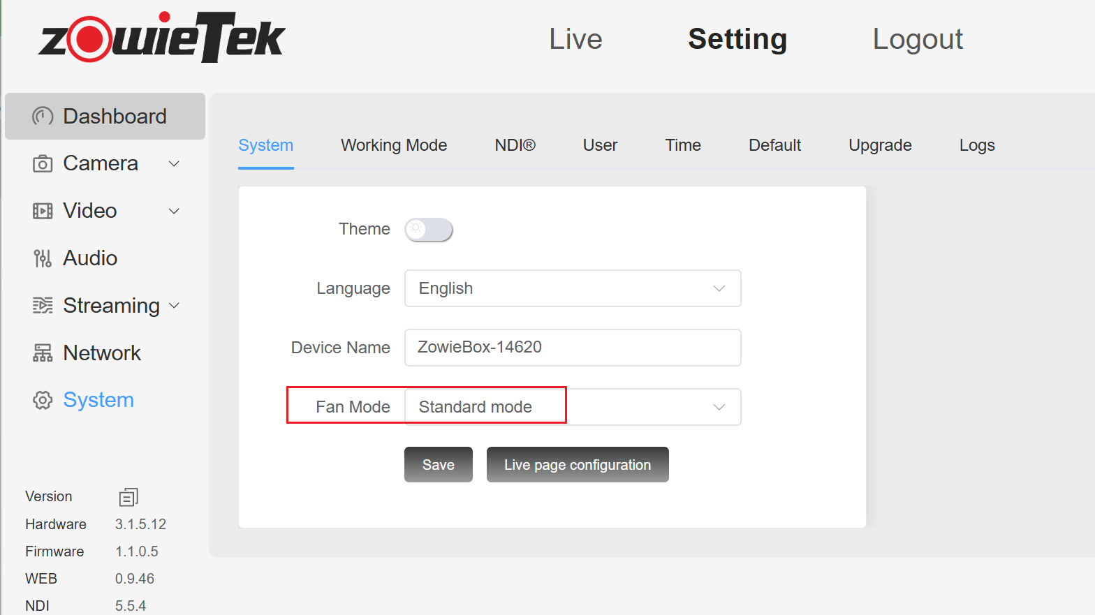 Please log in to the web console and click Setting to view the current hardware version of ZowieBox. Hardware versions 3.1.10 and later or 3.1.x.22 or3.1.x.12 can control the fan speed.