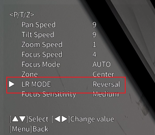 - Click [P/T/Z] to switch the LRmode to Reversal.