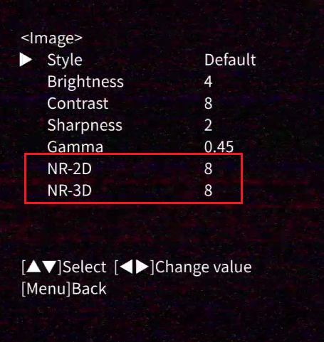 Method 2: Click the OSD button to enter the OSD menu, enter [Camera]->[Image], and select the required noise reduction level.