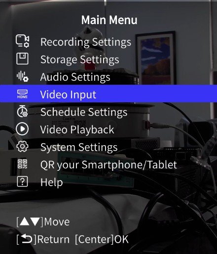 Or click the Menu button on the remoter to enter the main menu and select the Video input option.