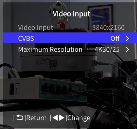 - If the recording resolution option is only 1440×1080, please enter the video input option to turn off CVBS.