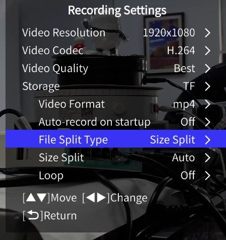If you need to segment in other ways, please click the Menu button at the remoter to enter the main menu and select Recording Settings