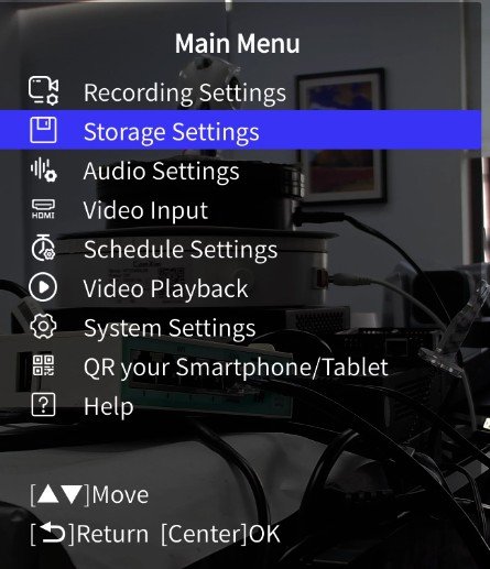 If you need to format the disk to exFAT format, please click the menu button at the remoter to enter the main menu and select Storage Settings