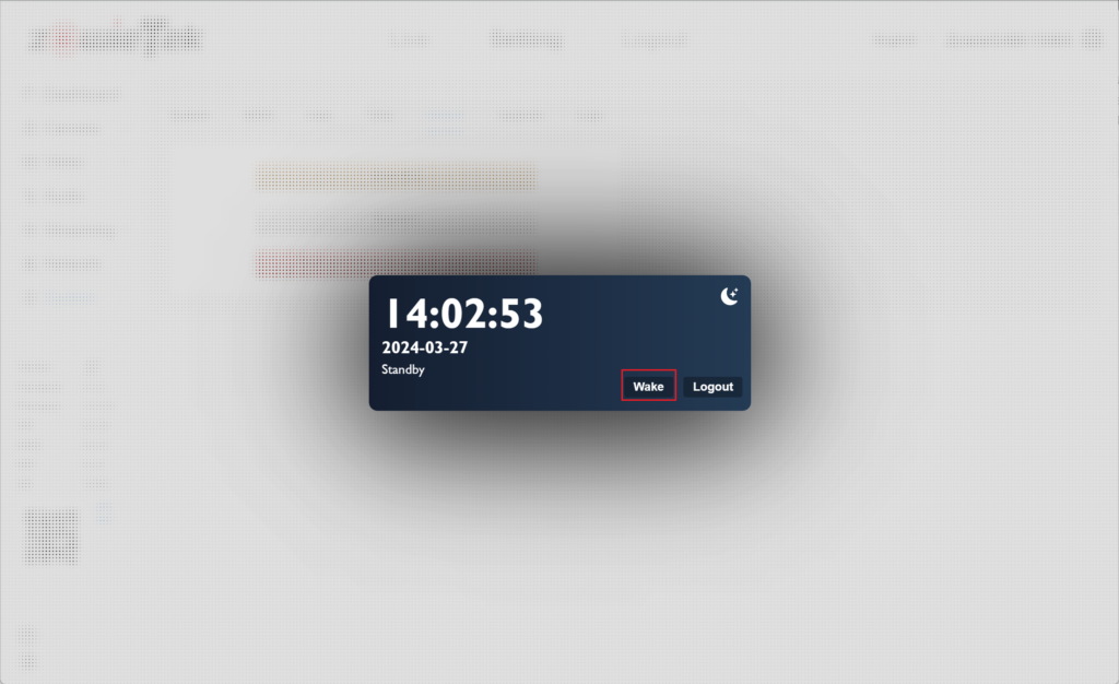 Log in to the web console again and click Wake to exit standby mode.