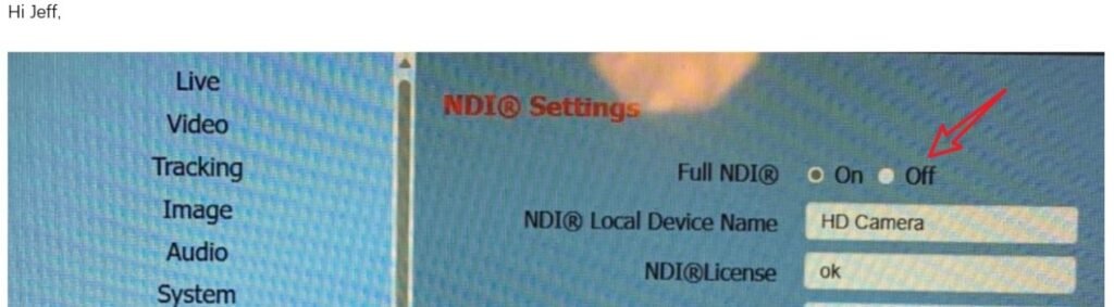 (2)For some camera like PTZOptics, AVKANS brand model from the manufactuere VHD. The camera’s default NDI output is Full NDI. Go to Camera Web > NDI@Config, turn it off. It will take effect after restarting.