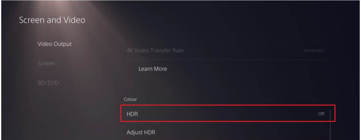 4、 Enter the PS5 system settings interface, click Screen and Video, and turn off the HDR in the Video Output.