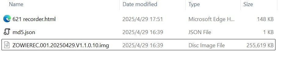 - Copy the two files md5.json and ZowieREC to the root directory of the USB flash drive. Do not put them in any folder, otherwise the device will not be able to detect the upgrade file.