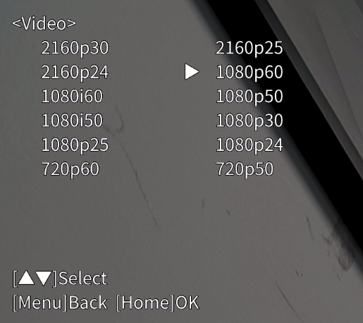 Click the Menu button to call up the OSD menu. Select [Video]->[Format], select the resolution to change, and then click the home button to confirm.