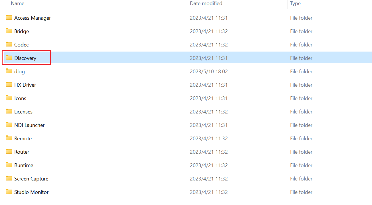 Select the Discovery folder in the folder and double-click to run NDI Discovery Service