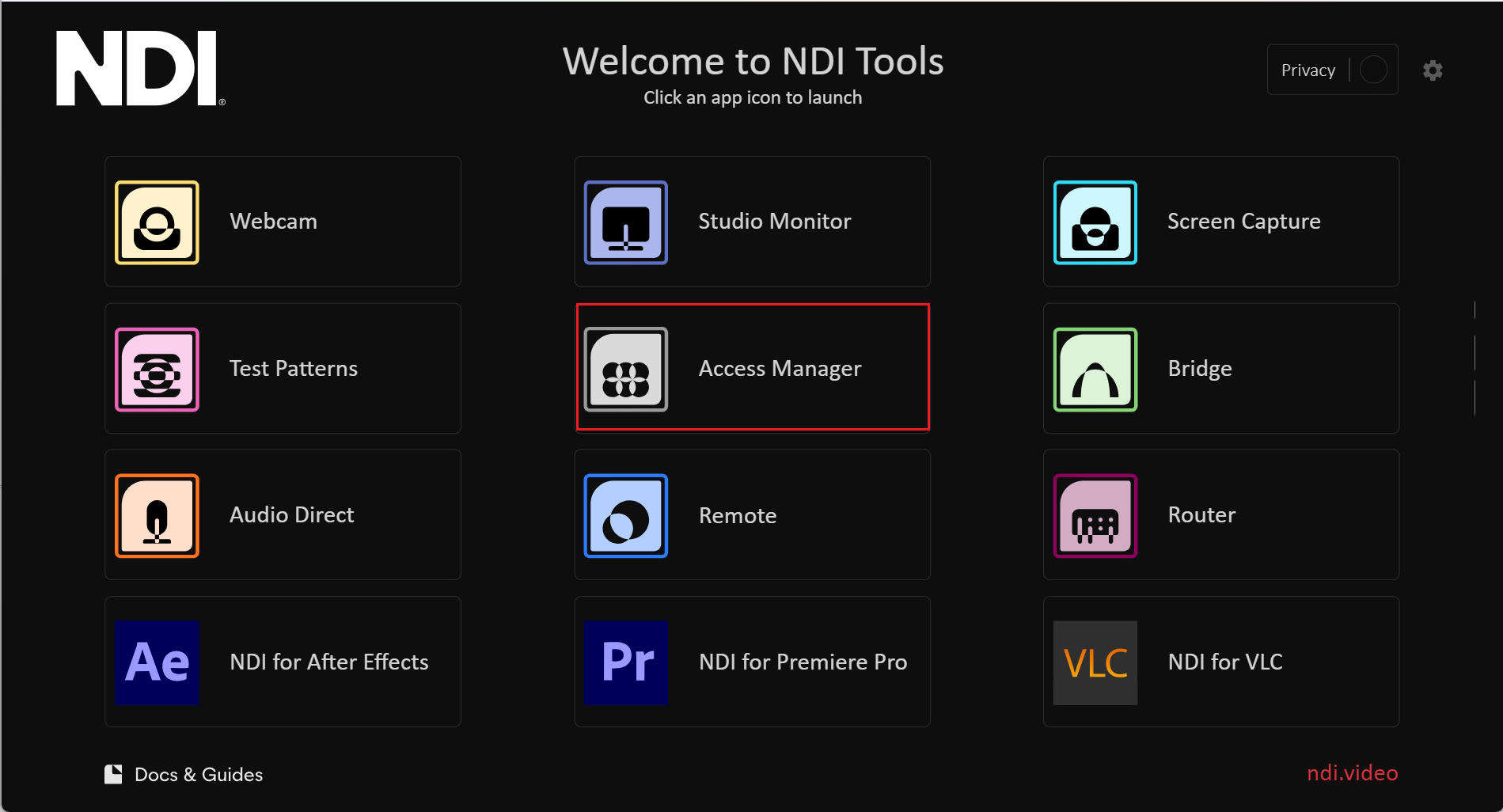 Open the Access Manager tool in the NDI tool.