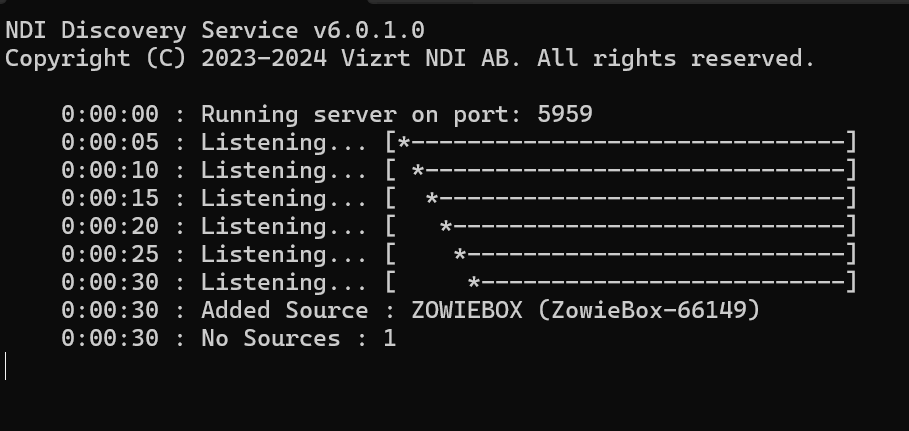 After waiting for a while, the NDI Discovery Service software opened in step 6 will discover the NDI source.