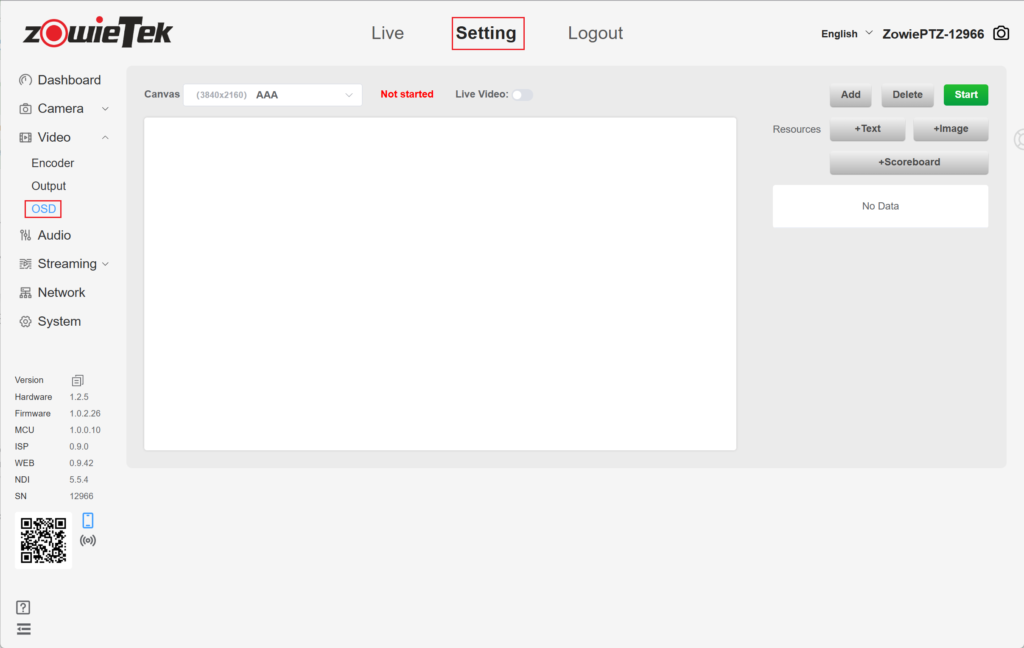 1.Please log in to the web console of the device and click Setting->Video->OSD.