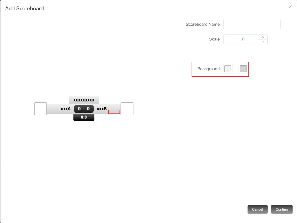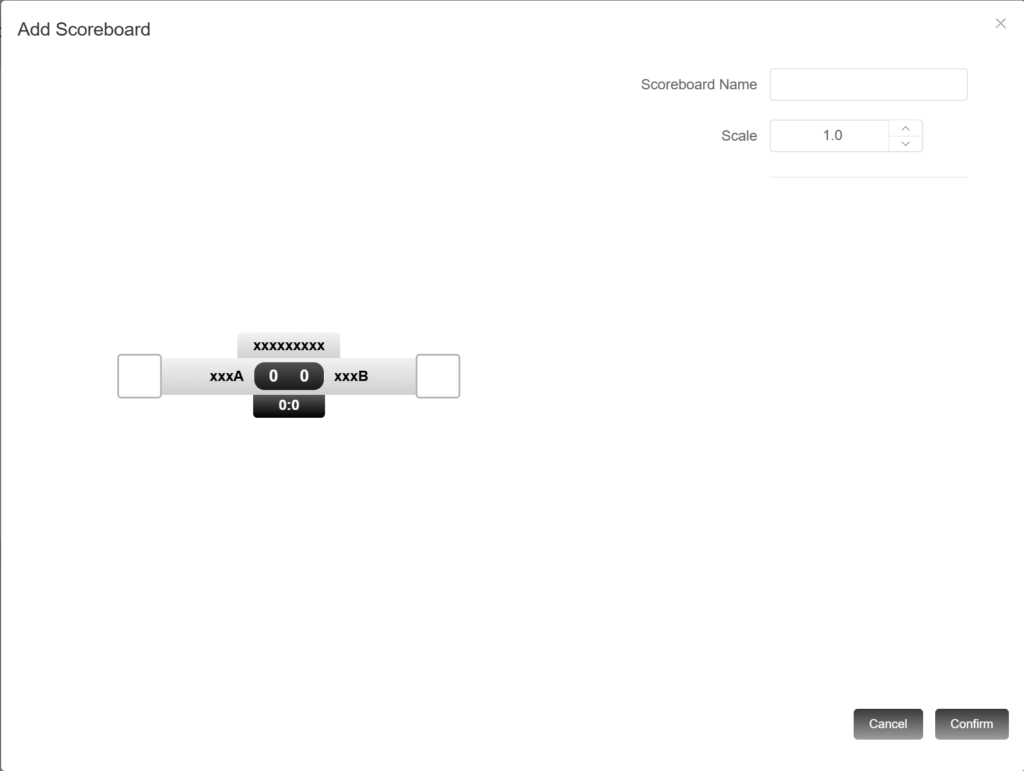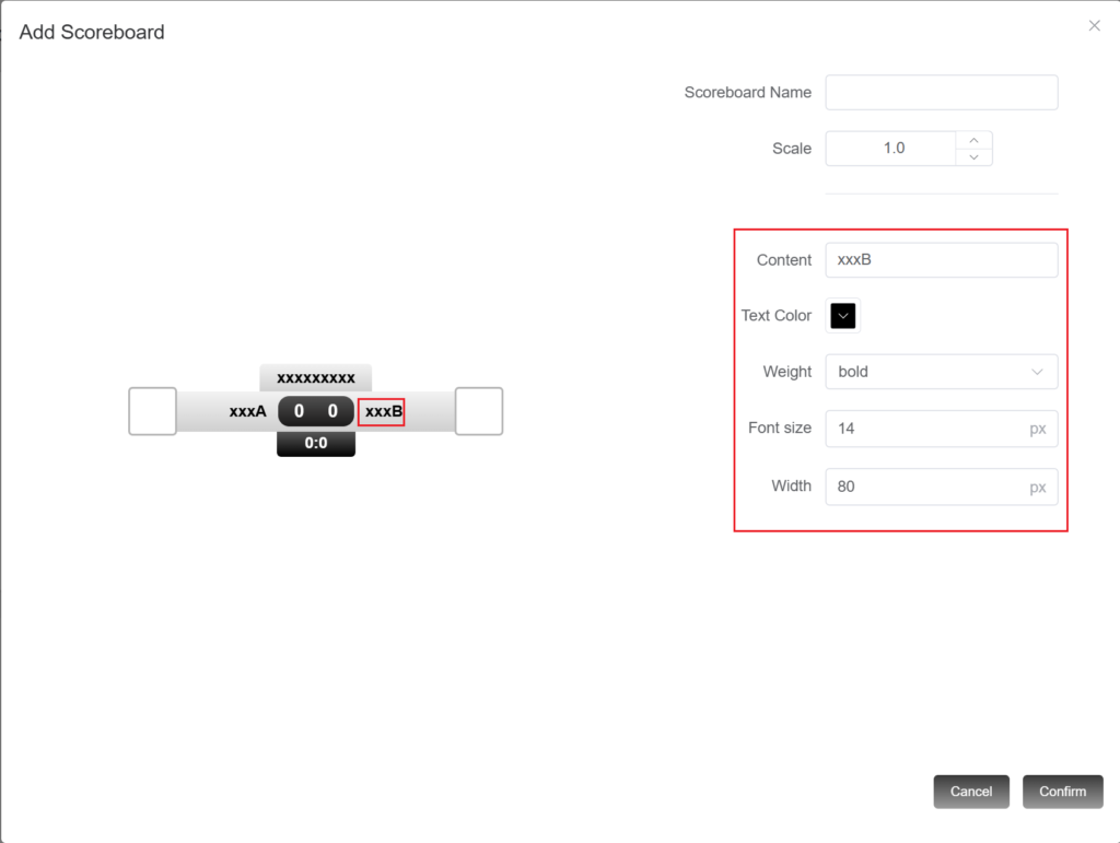 4.Enter the name of the scoreboard and modify the size of the scoreboard.