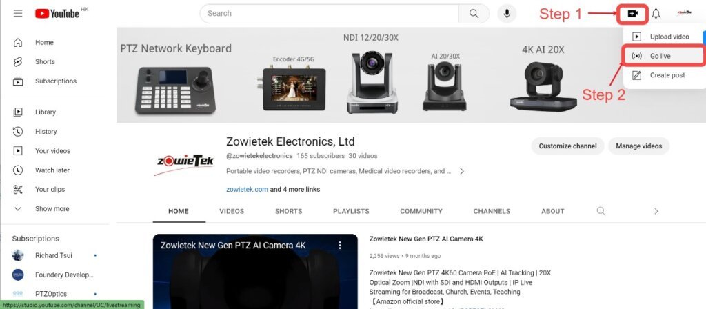 First, please log in to YouTube’s official website and enter the streaming page shown below to obtain YouTube’s Stream URL and key.​​​​