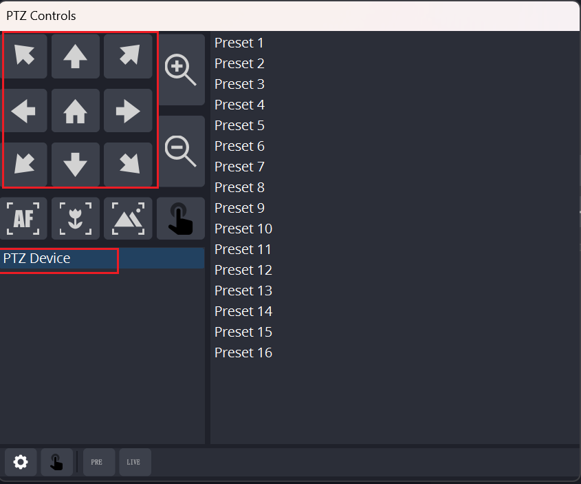 - Click the settings button on the lower left of PTZ controls.
