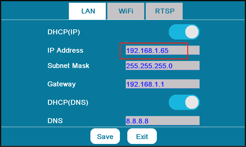 If you use the LAN, you can get the IP address as seen below.