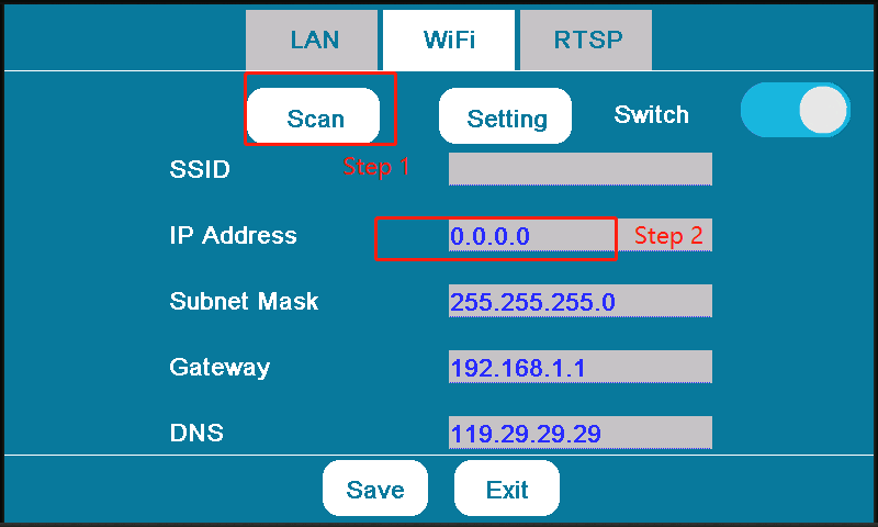 Press the ‘Scan’ and choose the Wi-Fi you want to connect.