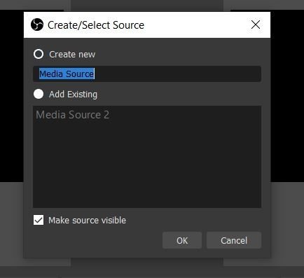 Choose Create new and name the source whatever you would like, then press “OK”.