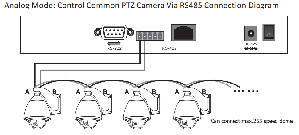 1. Using VISCA by RS485 bus connection method, the third pin Ra of the joystick controller connect to TXD IN- of the camera, the fourth pin Rb of the joystick controller connect to TXD IN + of the camera, and the first pin Ta of the joystick controller connect to RXD IN- of the camera, the second pin Tb of the joystick controller connect to RXD IN- of the camera.
