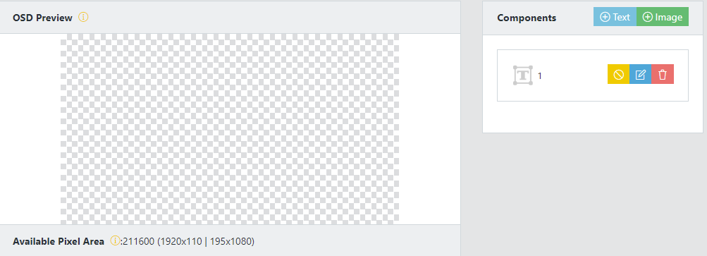 In the “OSD” optional control page, there are provides up to 4 customize OSD components that can be either text or a picture, once OSD components is added, it will appear in the upper left corner of the screen. However, if you want to change the location of the OSD components, it is recommended to operate on your computer in order to get best user experience.
