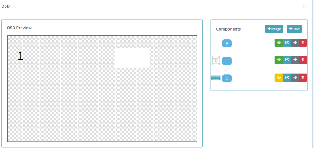 Of course. By clicking the “OSD” option on the left column of the web control UI, users can see the OSD option control page. There are provides up to 4 customize OSD that can be either text or a picture, and the user can drag and drop OSD Components anywhere on the left grid area.