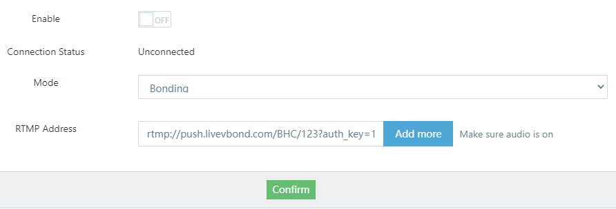 To use the web interface, writing them together in the “RTMP Address” and using / to separate. The LiveV400 can push to nine platforms at once.
