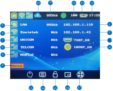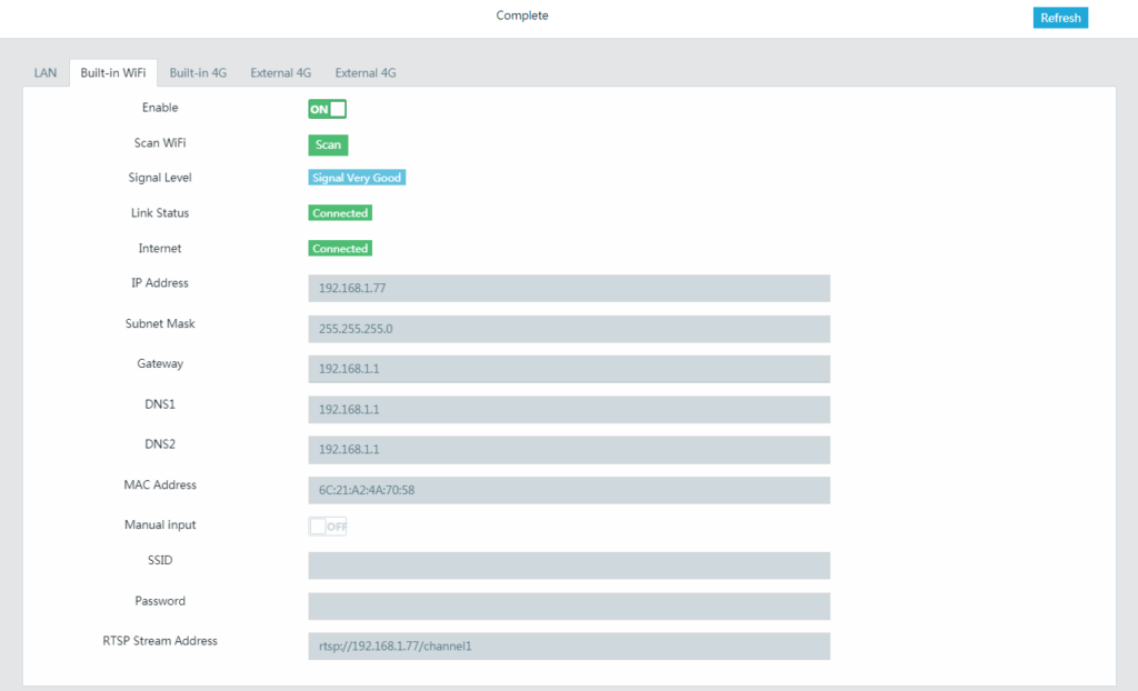If LAN, WIFI, 4G network are connected, the screen will display all of the network information.