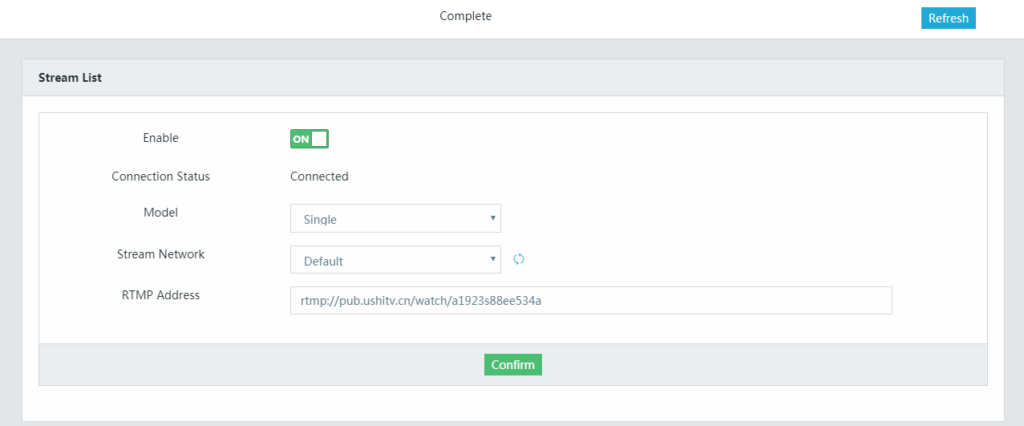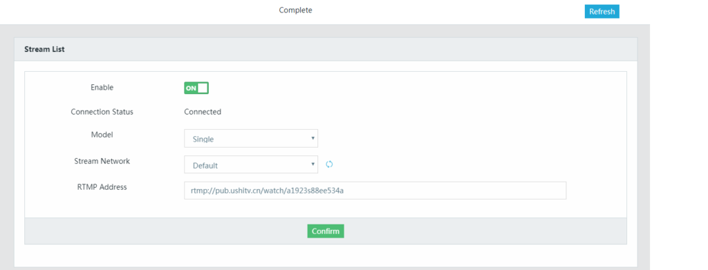 Last, please fill in “RTMP Address” and click the “Confirm” button to apply the setting.