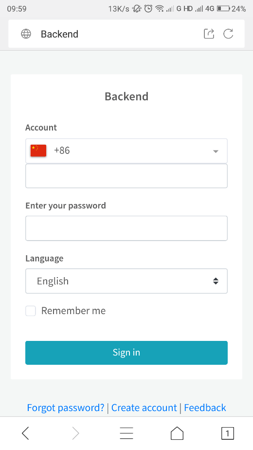 LiveV210’s QR code is at the back of the encoder. Please scan the QR code with your mobile phone and enter the user interface as shown below. If you don’t have an account yet, please click “Create account” at the bottom of the picture to create your account.
