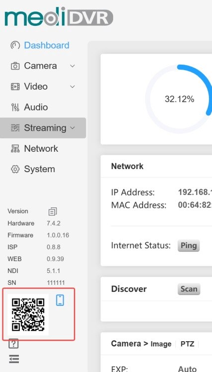 If users need to use mobile phone to log in the web control interface after logging in the web control interface on the computer side, please make sure that the mobile phone and MediCam are in the same LAN, and scan the QR code at the bottom left corner of the web page to log in the web control interface.