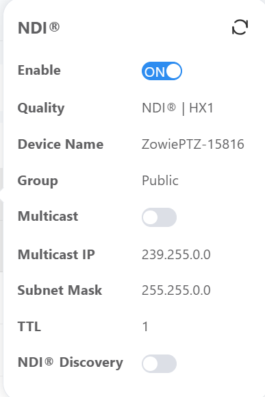 14: NDI status, click to obtain the NDI name, NDI status, NDI quality, NDI group, NDI discovery function and other information of the current device. If the information is not refreshed in time, please click the refresh button in the upper right corner.