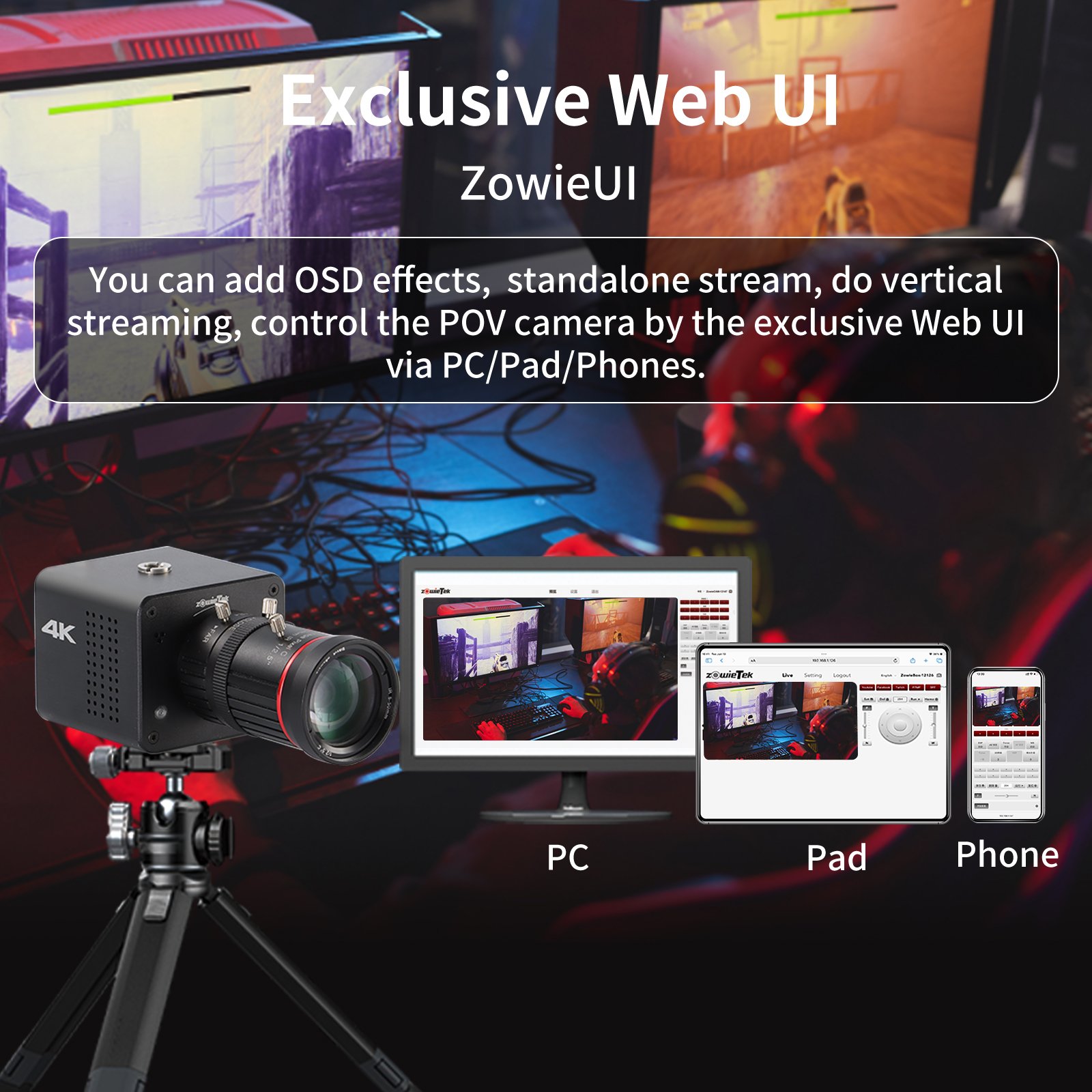 ZowieCam can simultaneously output 4K HDMI and 3G-SDI HD video, which is suitable for diverse scene requirements