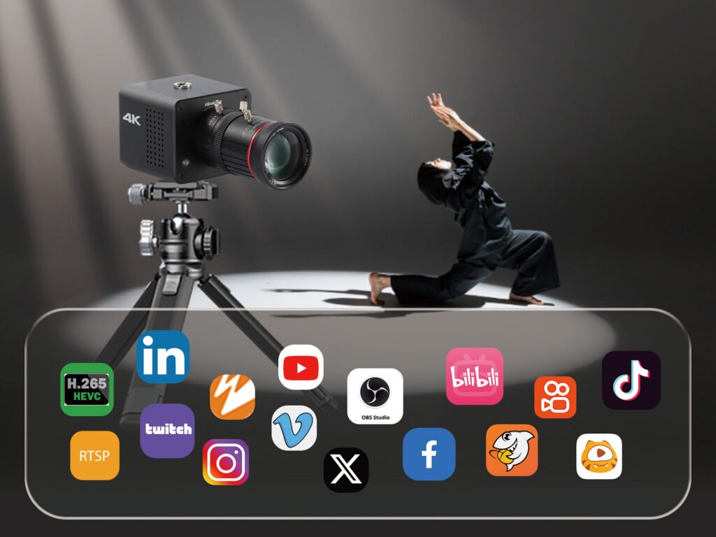 Its seamless transmission technology enables live streaming to all major RTMP(S) or SRT platforms, covering platforms such as Facebook, YouTube, Twitch, LinkedIn, Instagram, Twitter, Wowza, and Vimeo.