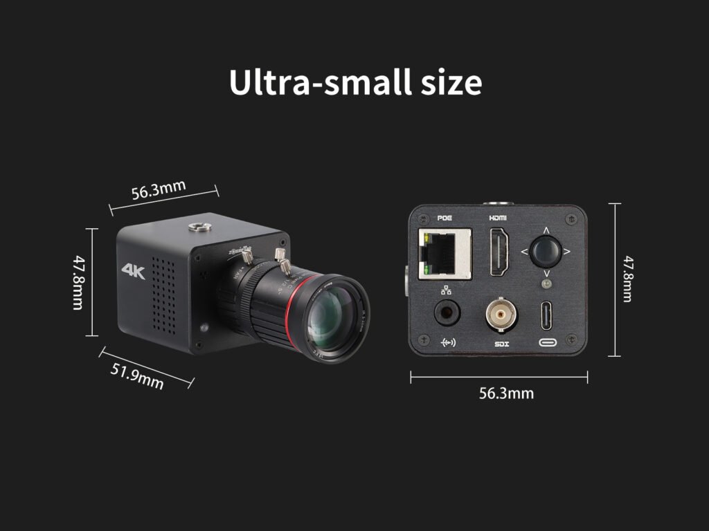 ZowieCam 4K POV camera, C/CS mount is the latest lightweight and compact functional cameras designed by ZowieTek. They can be used with suitable M12 lens according to the needs of different applications. The video can be output via HDMI/SDI or ultra-low latency SRT encoding.