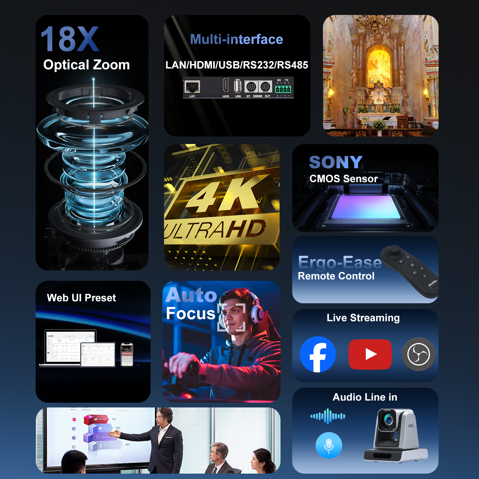 Designed for modern meeting spaces, ZowiePTZ delivers crystal-clear video, smooth pan-tilt-zoom control, and effortless connectivity—making it the perfect choice for video conferencing, hybrid meetings, and remote collaboration.