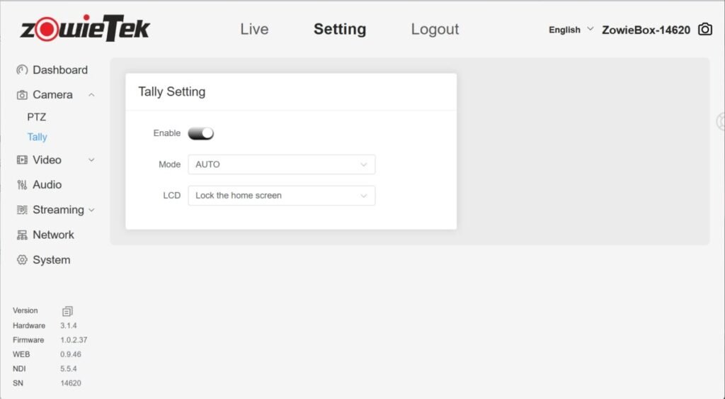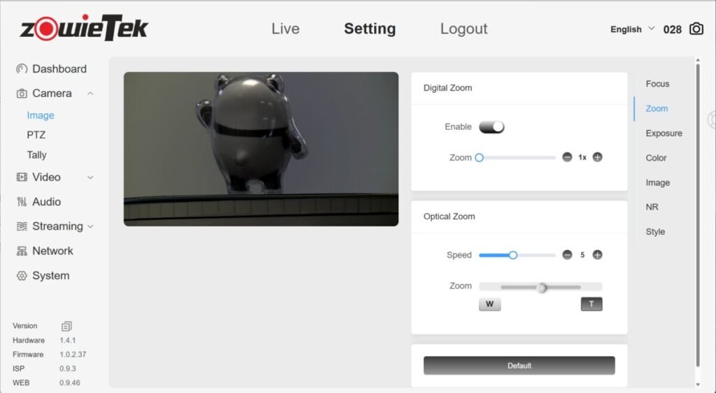 (Only ZowieBox and ZowiePTZ)