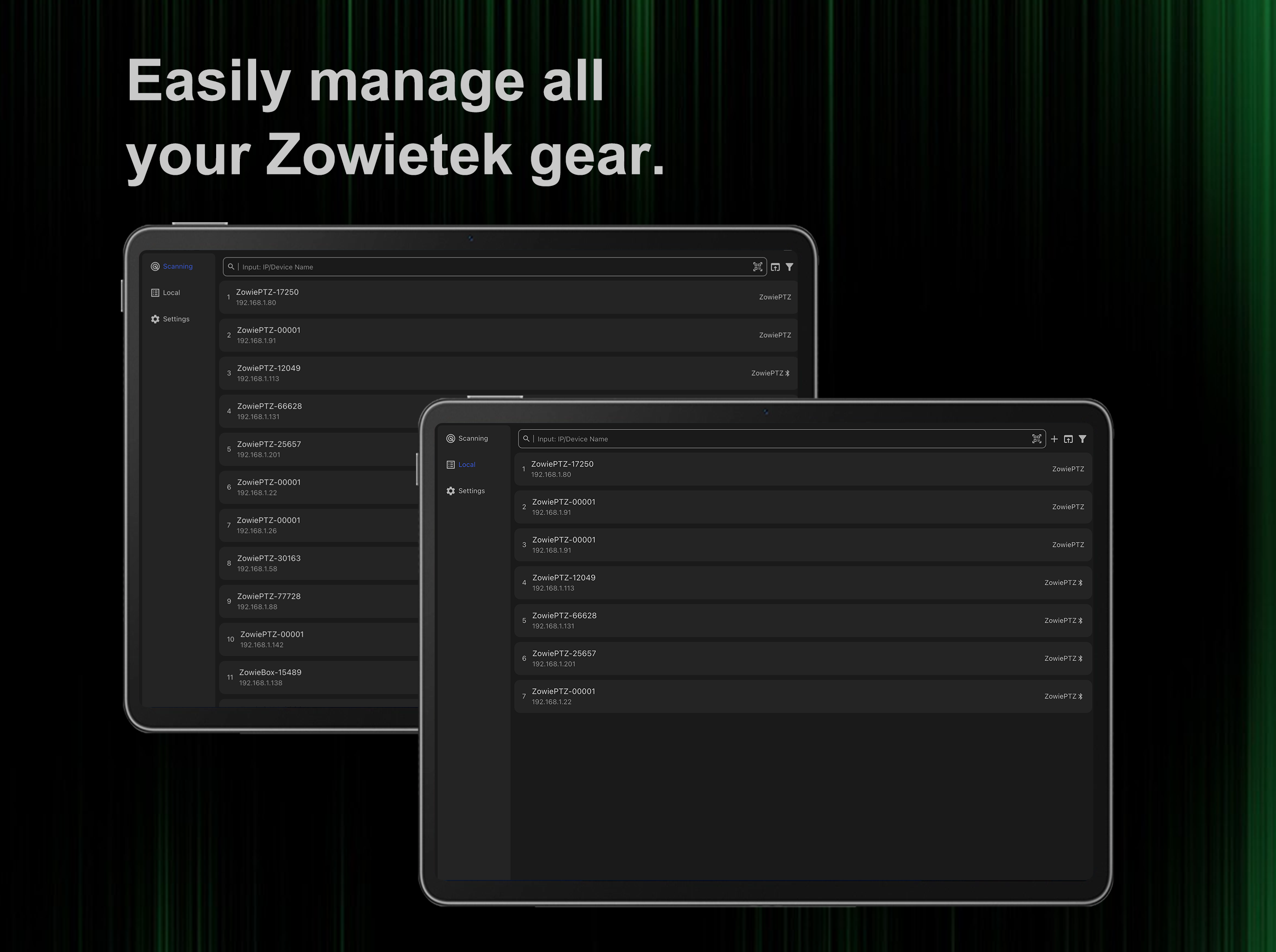 ZowieX empowers users to monitor, control, and configure a full range of Zowietek devices—including ZowiePTZ, ZowieCam, ZowieBox, and ZowieREC—directly from their smartphone or tablet.